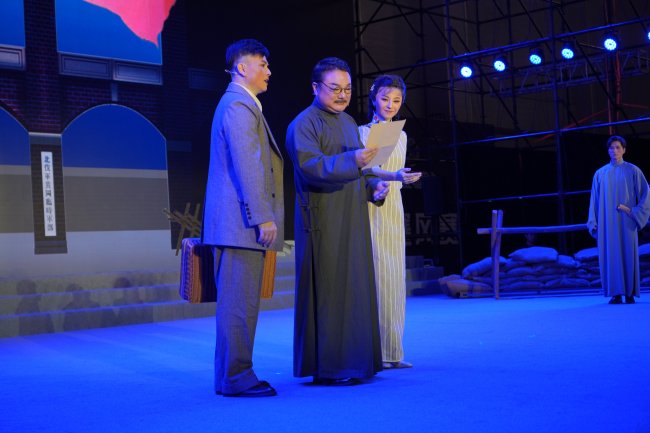 “学堂遍黄冈,处处读书声。百年老师范,代代铸师魂。初心似红烛,不畏霜天永放光明……”舞台上,伴随着歌声,演出帷幕拉开,身着长衫马褂和学生装的师生重现“黄州师范”学堂旧景。