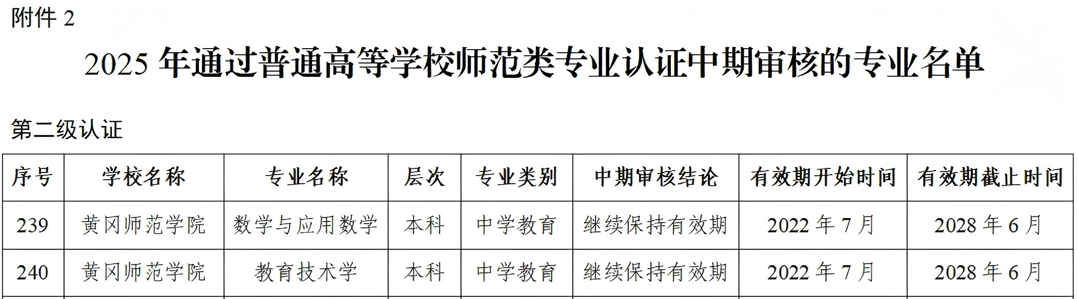 近日,教育部办公厅公布了2025年通过普通高等学校师范类专业认证的专业名单及中期审核专业名单(教师厅函〔2025〕18号),我校物理学、音乐学、计算机科学与技术3个专业通过第二级专业认证,认证结论有效期六年,自2025年9月起至2031年8月止;教育技术学和数学与应用数学2个专业通过了师范类专业认证中期审核,继续保持原认证有效期。